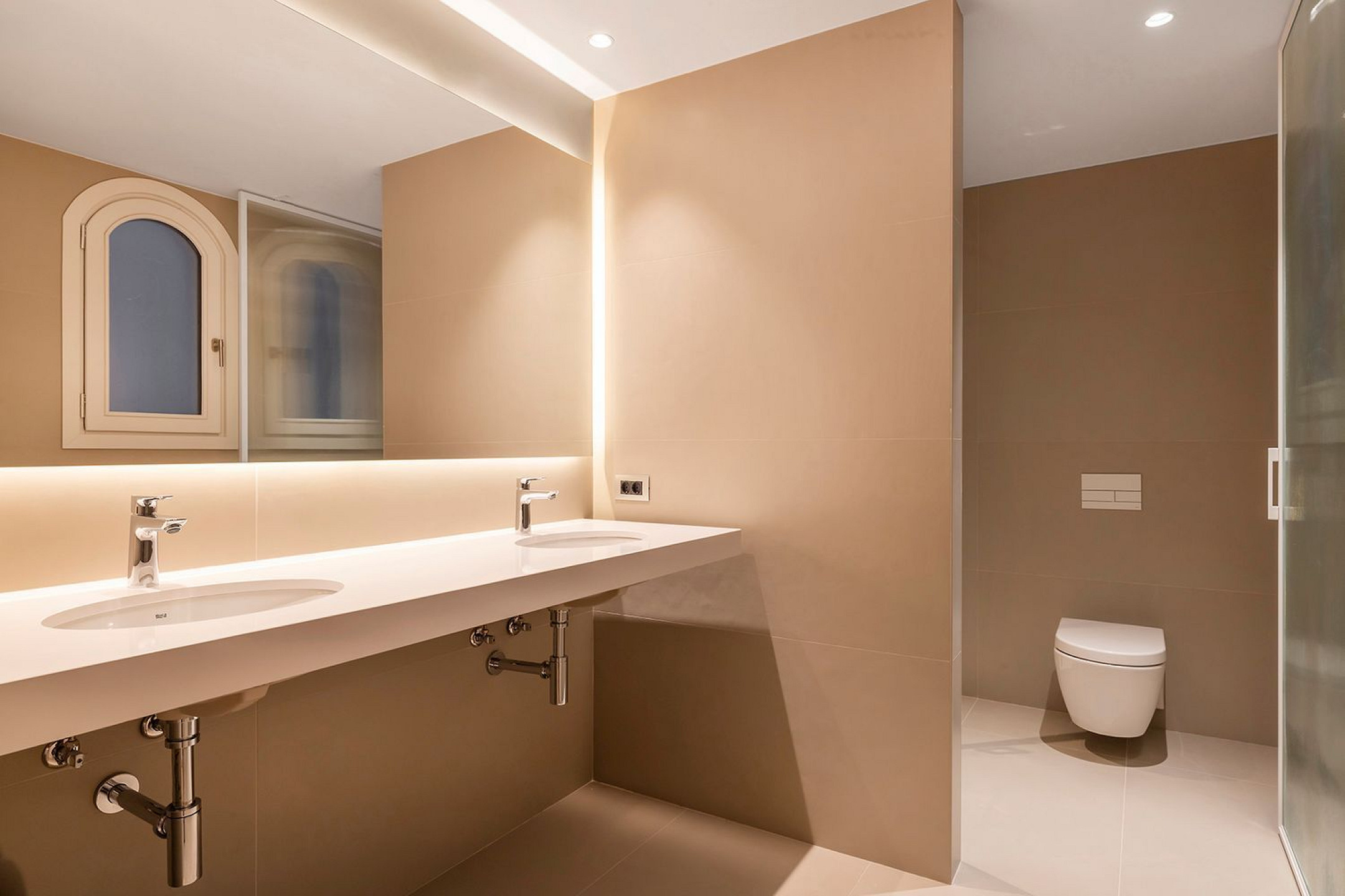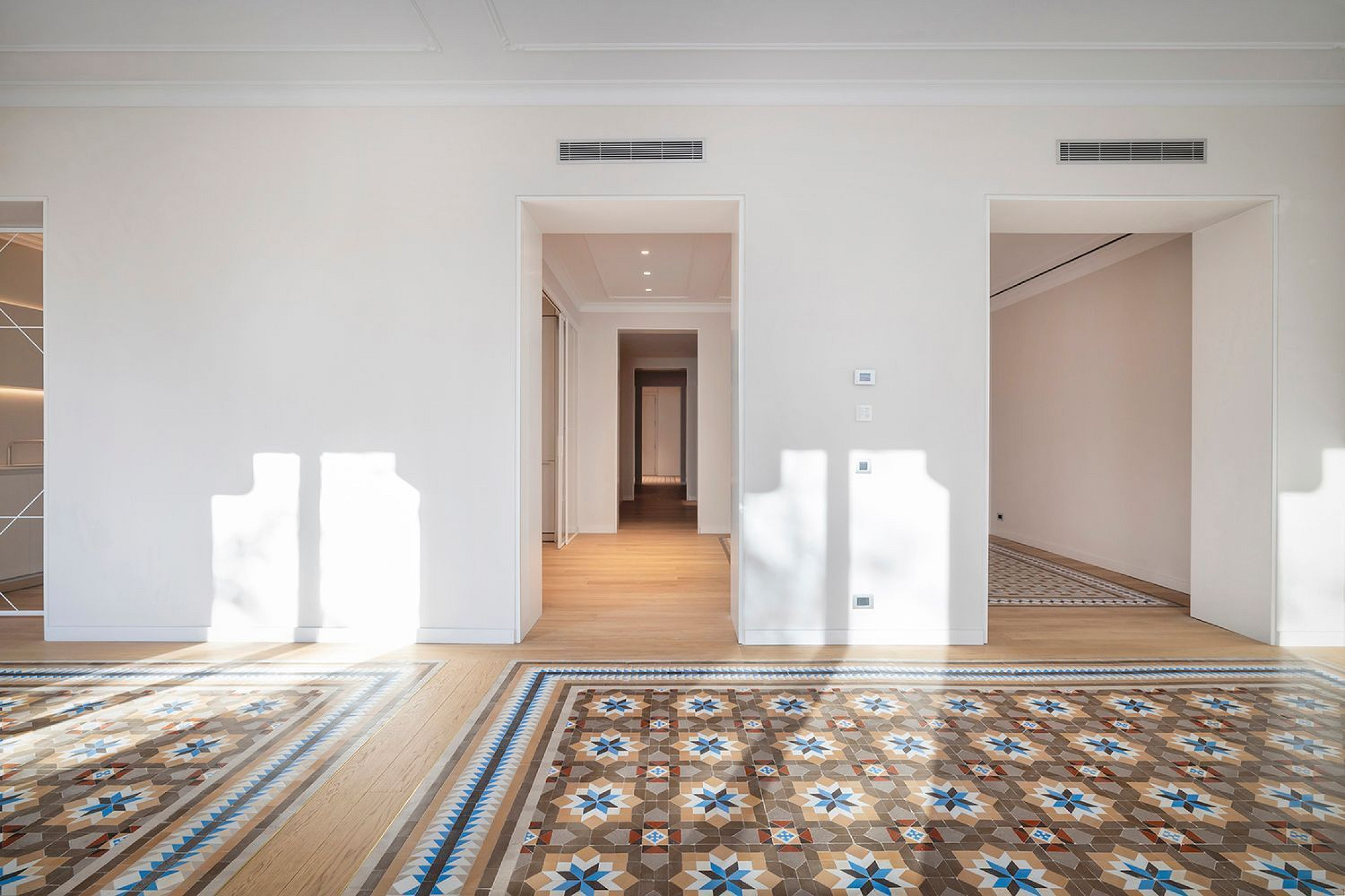 Las zonas comunes completan la propuesta con un vestíbulo histórico restaurado y una azotea comunitaria de gran presencia, desde la que se disfrutan vistas abiertas al mar, Montjuïc y Tibidabo, equipada con piscina, solárium y espacios pensados para el encuentro y el disfrute en un entorno reservado.