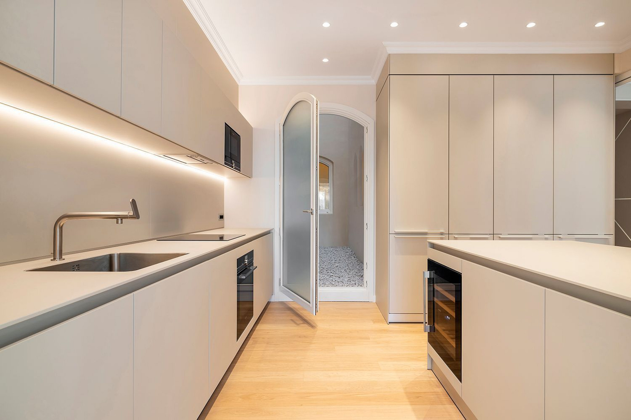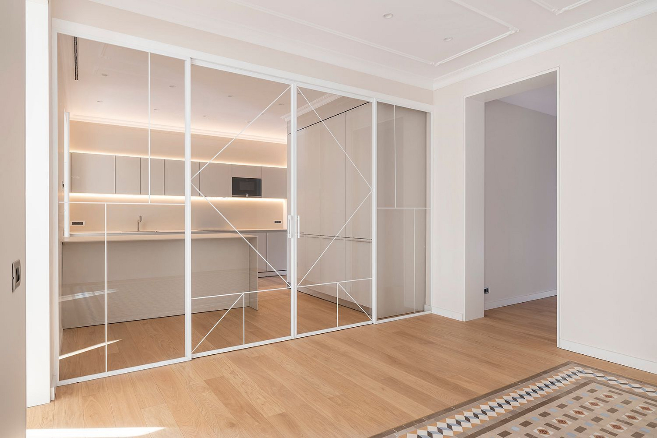 El interior se articula en torno a una amplia zona de día con cocina abierta totalmente equipada, integrada de forma natural en el espacio y resuelta con materiales de alta calidad. La vivienda dispone de tres dormitorios bien proporcionados y dos baños completos, concebidos para ofrecer funcionalidad, confort y una estética atemporal.