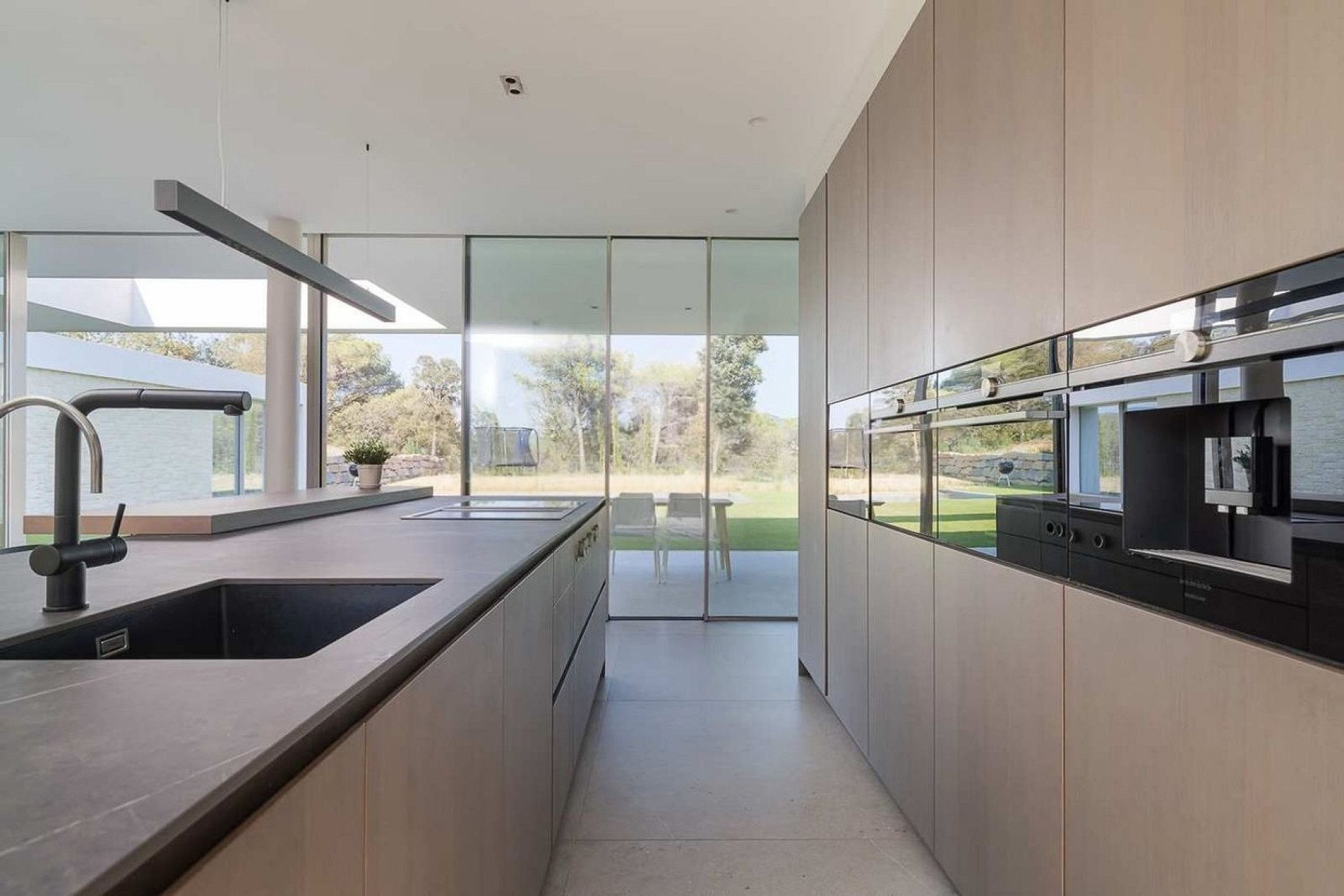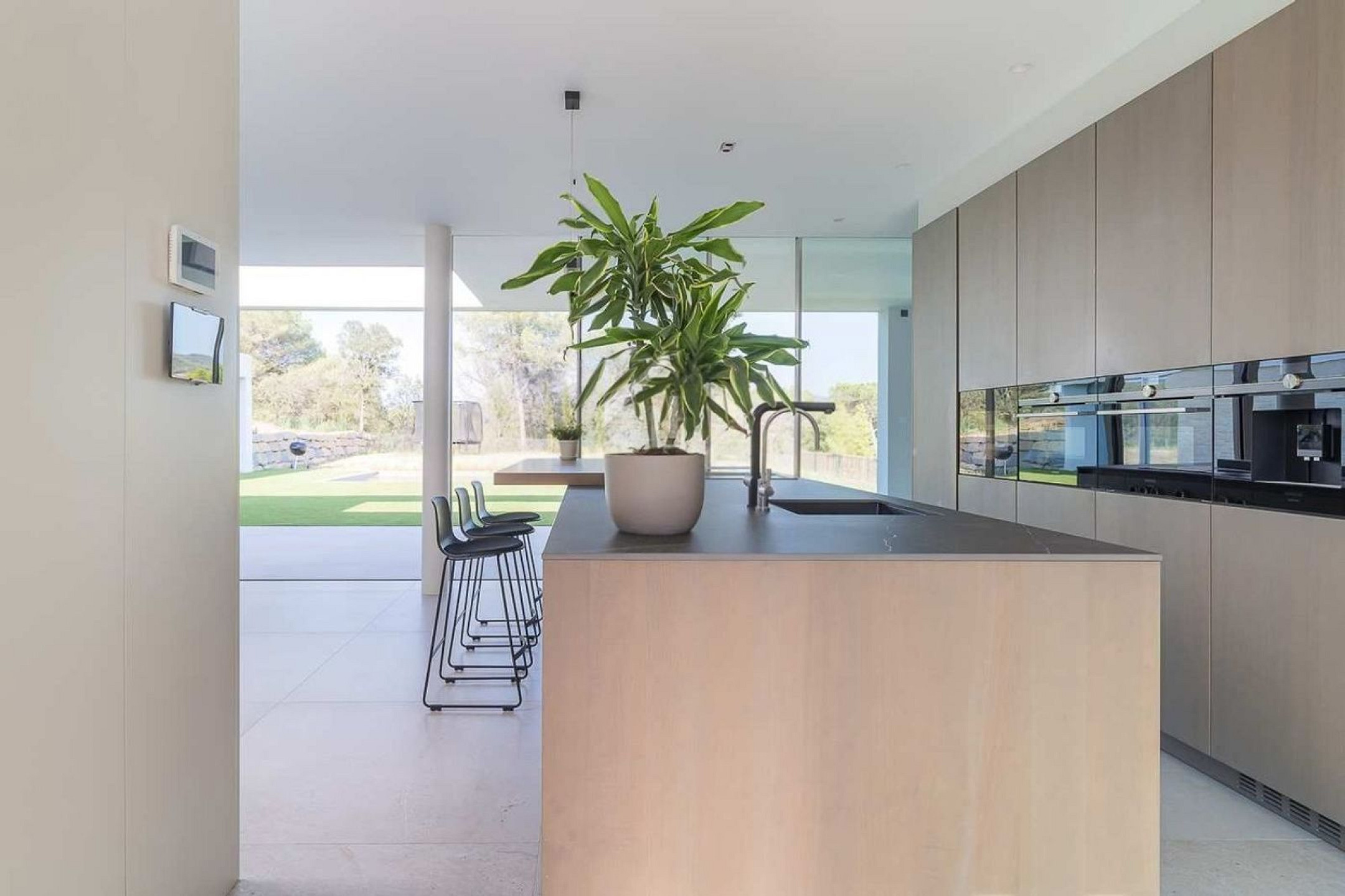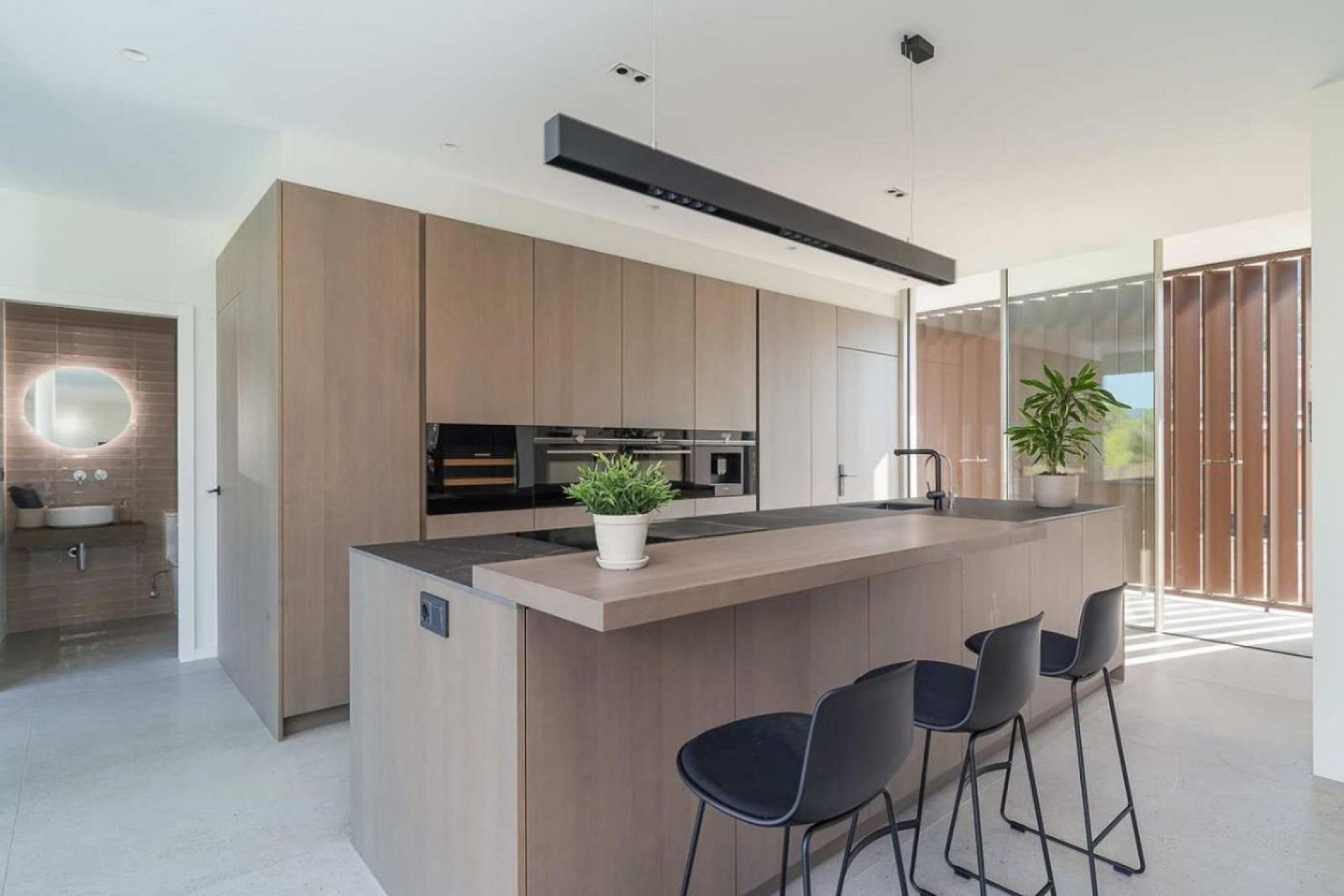 La cocina abierta, equipada con electrodomésticos de alta gama, ha sido concebida para un uso tanto funcional como social. Junto a ella se integra un lavadero independiente, discretamente resuelto. En esta misma planta se dispone un aseo de cortesía y un despacho, ideal para el trabajo desde casa.