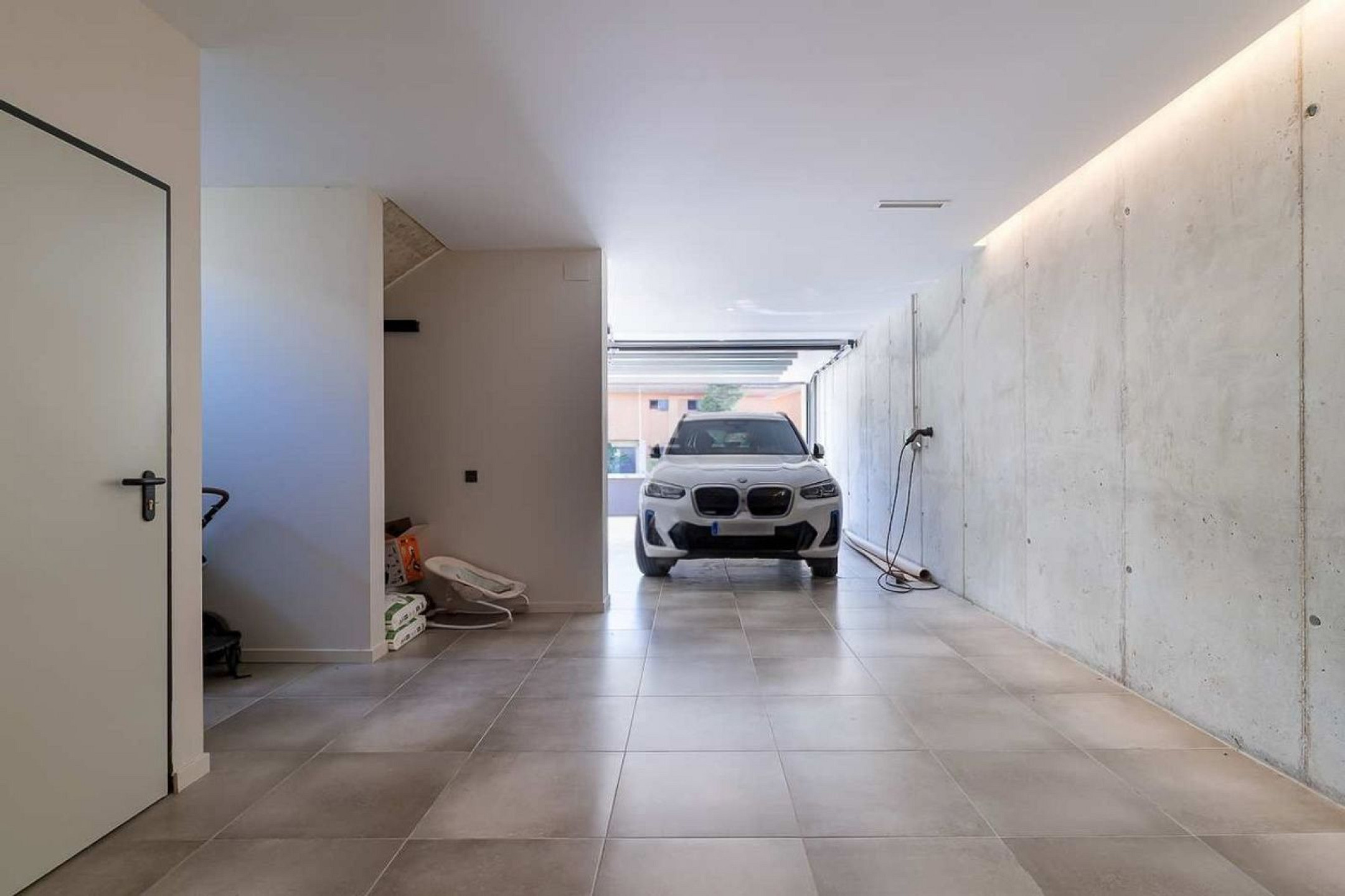 La planta subterránea aporta una funcionalidad adicional, con un garaje con capacidad para tres vehículos, espacios de almacenamiento y una sala técnica que alberga los sistemas avanzados de la vivienda, facilitando una gestión eficiente y centralizada.