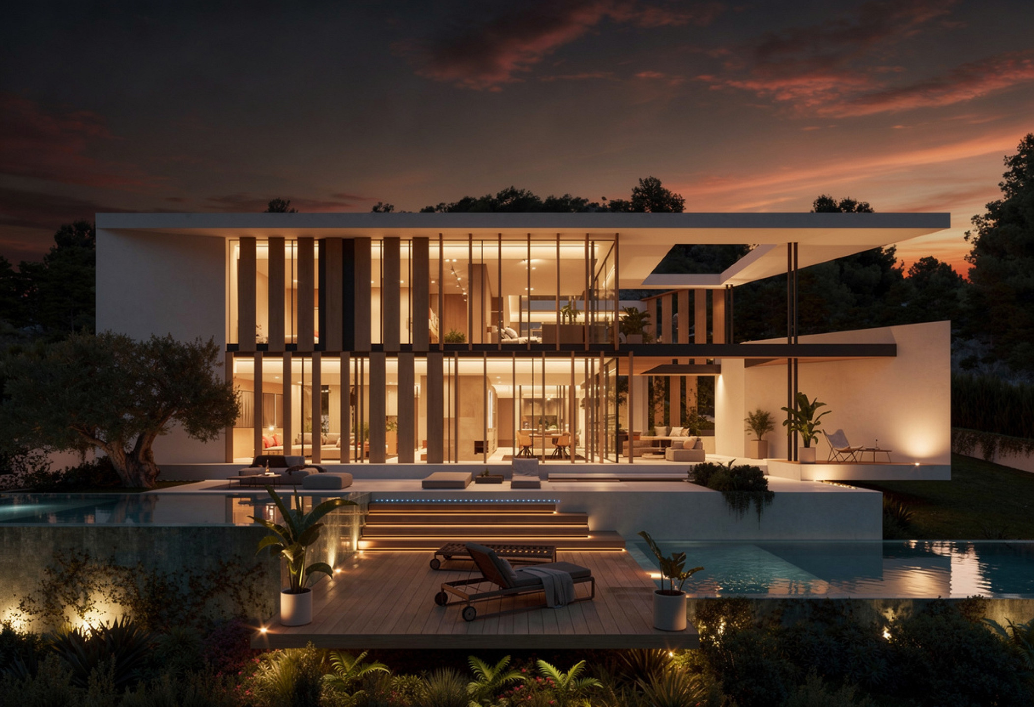 La zona de noche está compuesta por cinco dormitorios, todos ellos en suite. Todas las estancias disponen de acceso a terrazas privadas, desde donde se disfrutan panorámicas vistas al entorno.
